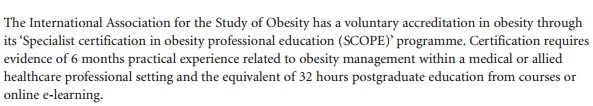 NHS England's commissioning guidelines for severe and complex obesity 2013/2014 require Bariatric Specialists to be members of SCOPE.
