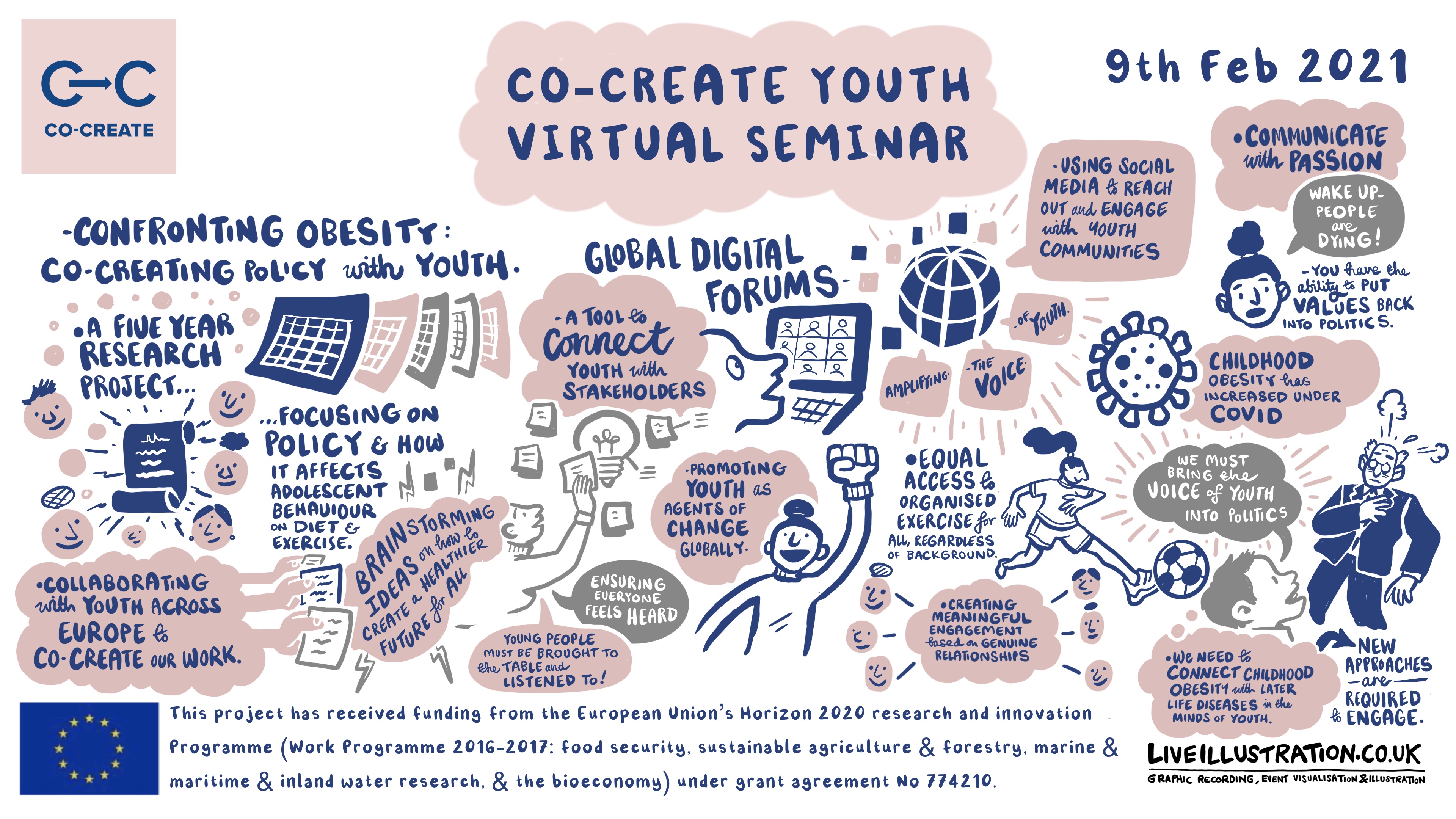 CO-CREATE, a five-year (2018-2023) research project funded through an EU Horizon 2020 grant, aims to reduce the prevalence of obesity among adolescents in Europe through policy actions to promote a healthier food and physical activity environment. CO-CREATE’s vision is that before 2025, the rise in adolescent obesity will have come to a halt. The project brings together a consortium of 14 international research and advocacy organizations, across 10 countries to generate new insights into childhood obesity and its relation to the implementation of policies. For more information on CO-CREATE visit: https://www.fhi.no/en/studies/co-create/