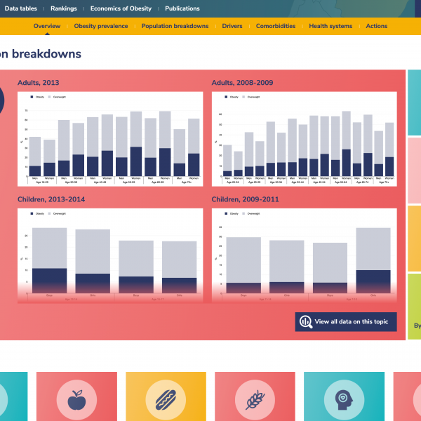 Our new website is more interactive and has more data than ever before, with a suite of new features. It aims to be the first point of call for obesity and obesity-related data for researchers, policymakers, health professionals and members of the public. Information is collected on obesity prevalence and trends, the prevalence of selected drivers and comorbidities of obesity, the economic impact of obesity, health systems, policies and more.