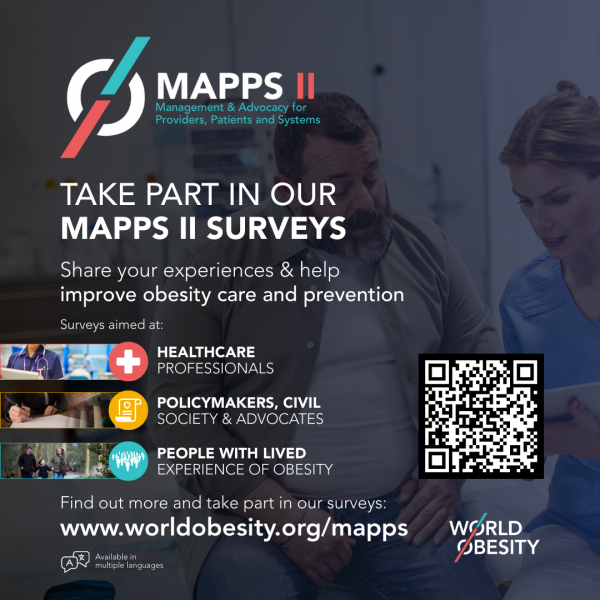 To participate in the MAPPS II project, you can share your understanding and experience of your country’s obesity health care system, public health and policy landscape in relation to obesity and the broader societal and social context please consider completing one or more of the surveys above, or heading to our webpage.: